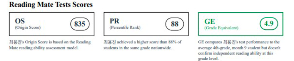 의미합니다. GE 3.8은 미국 학년 기준 3학년 8개월 수준을