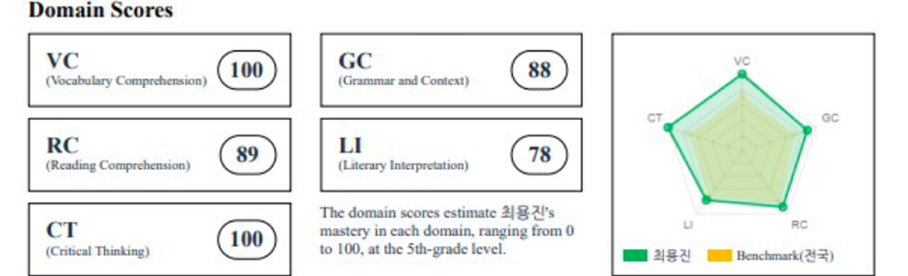 영어 수준이 해당 학년의 미국 학생의 수준과 동일함을